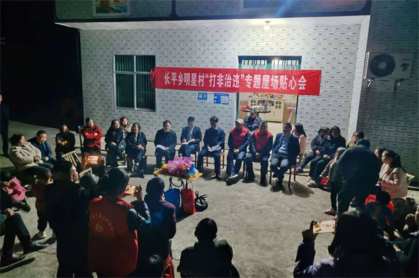 屋场贴心会上,“群众贴心人”和村民们汇聚一堂,以聊家常的方式,面对面向他们讲解非法生产、违规建筑等行为所带来的危害,重点宣传了《民法典应知应会200条》、扫黑除恶重点打击的12类黑恶势力问题、安全生产、防范电信诈骗、防毒禁毒、反对邪教、民间借贷等相关法律知识,以案为鉴,让村民们时刻保持高度警觉。同时,网格员在现场发放移风易俗、文明城市创建、“两险"征缴、森林防火等方面的宣传材料。会上,“群众贴心人”还认真听取和回复村民们的意见、建议。