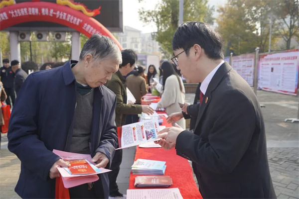 活动现场,各普法成员单位通过悬挂宣传横幅、摆放宣传展板、发放宣传资料、设立法律咨询台等多种形式,向群众宣传《中华人民共和国宪法》《中华人民共和国民法典》《中华人民共和国法律援助法》等各种法律法规知识,并“面对面、零距离、互动式”解答群众法律咨询,引导群众养成遇事找法、解决问题用法的良好习惯。