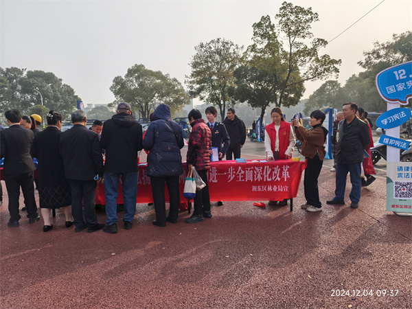 12月4日,湘东区林业局在萍钢广场开展了以“大力弘扬宪法精神,推动进一步全面深化改革”为主题的宣传活动。