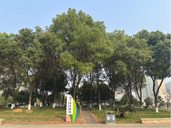 此次林下空间的打造,核心目标是实现人与自然的深度融合与和谐共生。在空间布局上,充分尊重原有林地的生态格局,以林间小道为脉络,将林下1000余平方的空间划分几个区域,精细修剪树木,达到疏、漏、透的效果,合理搭配了兰花三七、八角金盘、石蒜等花卉和灌木。市园林管理中心还进行了一次新的尝试——在冬季补种黑麦草,以期为冬季的园林增添更多绿意。