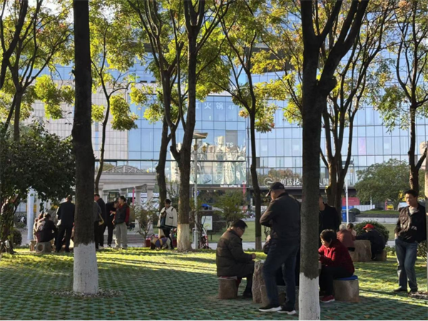 在这里,市民或是对弈棋局,或是纵情歌唱,或是沉浸在书籍的世界里,享受静谧的时光。李大爷表示:“以前这片树林雨天一个个黄泥水坑,晴天风一吹更是一脸灰尘。现在铺上了植草砖,还增添了6张石桌石凳,环境变美了,以后肯定会经常来,既能锻炼身体,又能感受文化氛围,太棒了。”