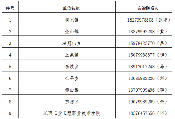 (三)上栗县基层各乡镇、高校武装部咨询电话: