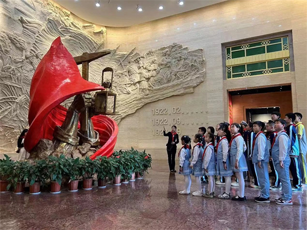 ▲学生参观安源路矿工人运动纪念馆陈列大楼展览序厅