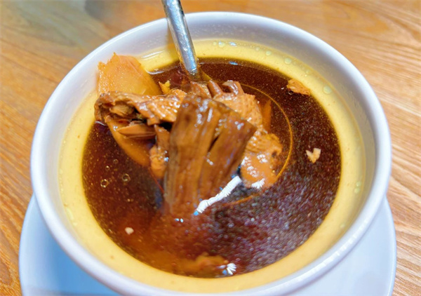 可能他们家的鸽子是自家养的吧,就没有外面那种腥味,我觉得味道非常地道,外脆里嫩,很好吃,鸽子汤也很鲜。