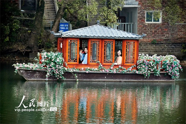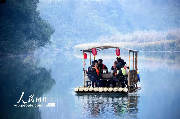 2024年12月13日,游客在江西省萍乡市湘东区白竺乡桐花谷水上营地欣赏美丽的山水风光。