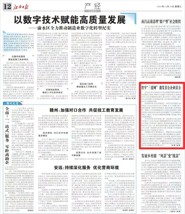 省媒聚焦!江西日报报道萍乡经开区:织牢“三张网” 激发非公企业活力