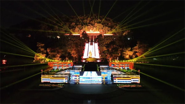 风起安源光影演艺项目是以安源胜利广场、安源纪念馆和后山山体绿植为载体,采用大功率高清投影机和智控激光、舞台灯光呈现演艺视听光影、以宏大的沉浸式 3D 效果打造一场城市级红色记忆、历史文化为主题的情境光影艺术。