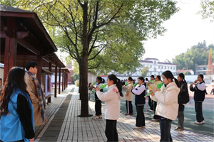 活动现场,同学们伴随着音乐的律动挥舞着手臂。“同学们,表情放松,不要紧张哦,手再抬高一点儿。”在舞蹈协会老师们温柔的语言引导下,同学们渐渐放松、自信起来。
