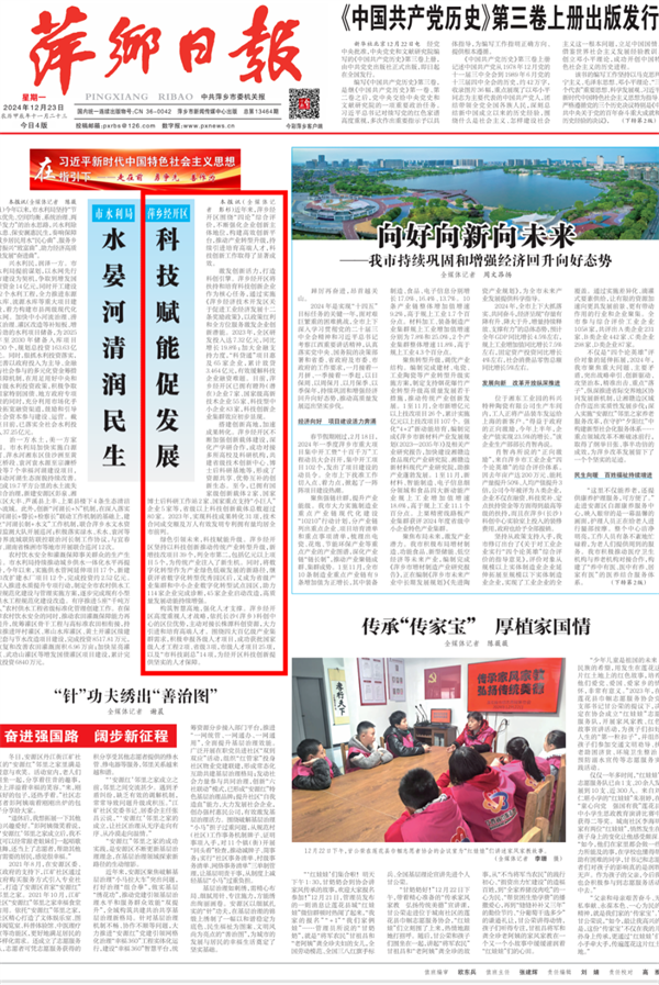 《萍乡日报》头版头条报道萍乡经开区:科技赋能促发展