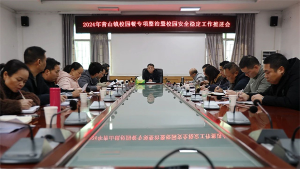 12月24日,青山镇召开校园餐专项整治暨校园安全稳定工作推进会。会议由镇党委书记吴钢主持,镇全体班子成员、部长,各村(社区)书记,各中小学、幼儿园主要负责人,市场监督管理局青山分局、青山派出所负责同志等参加会议。