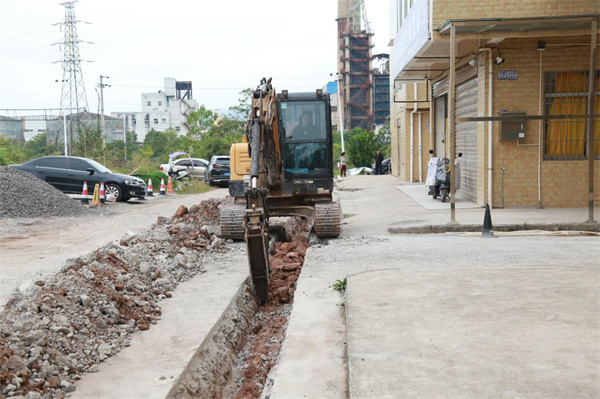 记者在现场看到,新铺设的管道在阳光下反射出耀眼的银光,工人们干劲十足。