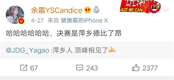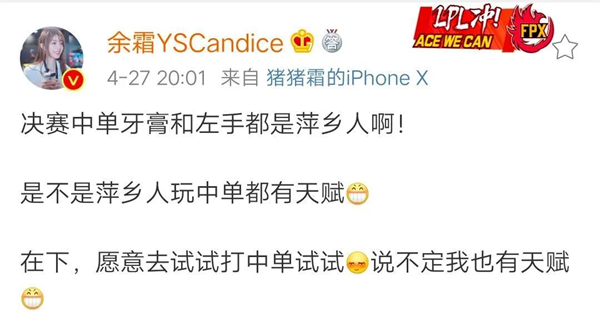 而每次在现场见证这一场场巅峰对决的主持人,常常又是来自萍乡的漂亮姑娘——余霜。这位毕业于中国传媒大学的萍乡姑娘,是“英雄联盟”官方中英双语主持人。