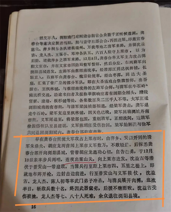 萍乡市政协、浏阳市政协、醴陵市政协合编的《萍、浏、醴起义资料汇编》(湖南人民出版社)之《萍浏醴起义的真相》记述:1906年12月10日,安源管带胡应龙领步兵二哨由案山关、南源出上栗市,与义军大战普安山。