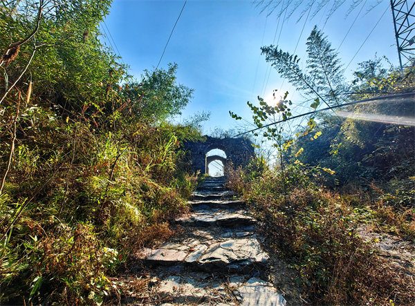 今年“五一”期间的一天,我终于迎来了揭开案山关神秘“面纱”的机会。我沿着319国道,驱车来到杨岐乡,通过案山关隧道,我将车停在319国道旁边关下村村民门口的停车坪,寻找34年前案山关的模糊印记。一下车,向通往案山关的山路望去,一座庙宇映入我的眼帘,走近一看,是松大夫庙。然后,我沿着一条青色的石阶步道,一边拾阶而上,一边观赏周边景色。大约十来分钟的路程,便老远就看到山顶有一个隘口,隘口的正中间,隐隐约约看到一间破旧的房子。我想,这就是我此行的目的地——案山关吧!她已经完全没有了我三十多年前经过此地的任何印记。我快步走到案山关亭子里,急切地想一睹其“芳容”。我仔细地将她的里里外外看了一个遍,似乎想从中找到一丁点当年留下的有价值的东西。然而,她却让我有点失望。我眼前所看到的一切是那么的破旧。断壁残垣静静地屹立着,它们见证了岁月的沧桑和历史的变迁。站在案山关远眺,向南是杨岐乡关下村,向北是杨岐乡关上村。案山关似乎是杨岐山的南北分界点,这里确实是具有“一夫当关,万夫莫开”的气势,是兵家必争之地。然而,随着社会的不断发展与进步,案山关的作用日渐减小,但是,她在我们上栗历史上的地位不容忽视,值得我们后人铭记。