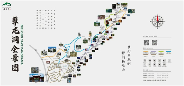 游客在售票大厅购买门票和观光车票后,前往3D演艺厅门口上车点,搭乘着崭新的观光车,穿梭于自然与人文交织的画卷之中,沿山到达孽龙洞新入口。沿山旅游公路设置了西迁精神传承基地、观景平台(神龙秘境)、中棚、山里打盹网红打卡点等多个停靠点,游客都可随时下车,沉浸式感知领略杨岐山这片土地的美丽与深邃,而观光车票则如同一张通行证,让每一次的启程与回归都充满便捷与自由。下车步行至七彩百步铁索桥,这座桥不仅是一道绚丽的风景线,更是连接洞内与洞外世界的神秘通道。游客可凭票乘坐观光电梯,踏入神龙谷的森林世界,抵达景区全新打卡地——神龙谷。神龙谷内沿着阶梯下行,溶洞奇观,映入眼帘。孽龙洞游览结束出洞后,游客们可踏上彩虹桥,前往杨岐山地质博物馆,探寻这片岩溶地质的奥秘。