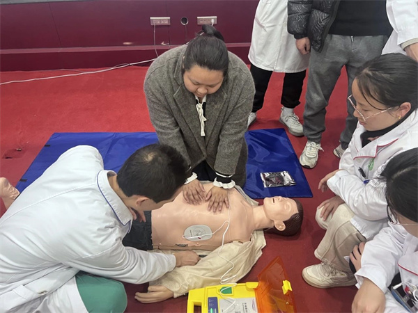 培训过程中,麻醉科陈仰东医师采取理论讲解和实践操作相结合的方式进行。列举了大量抢救实际案例,讲解了如何应对和处理日常生活中的突发安全情况及如何在有效的抢救时间内进行应急救护。强调学员们要熟练掌握急救技术要点和正确操作手法,要求大家在实施急救过程中要果断、迅速,分秒必争,抢占急救“黄金四分钟”。