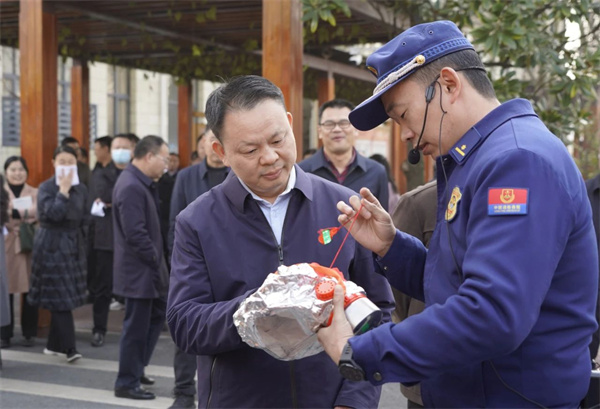 演练中,参演人员集中观看了消防安全警示片,消防救援局相关负责人就如何提高应急处置能力、火灾现场如何逃生自救、如何组织引导人员疏散以及如何正确使用常见灭火装置等内容向参演人员进行了精彩、细致的讲解。