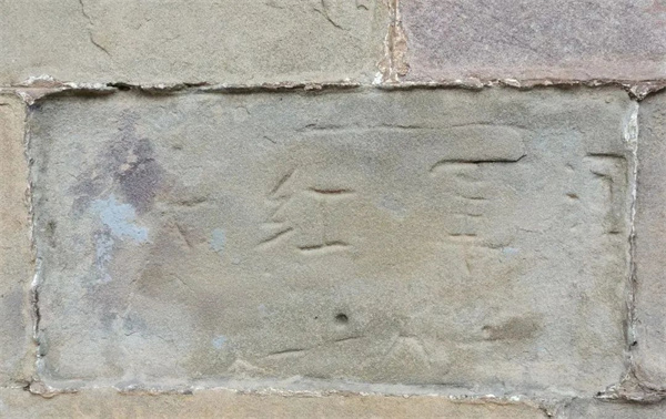 我心想,既然这里发生过许多战斗,那这里应该会有战斗的痕迹。为探究竟,我先来到石桥的西边河滩上,由于桥墩相隔较远,只能看到石桥的外形。然后,我独自往下走去,来到石桥的东边,下到桥墩。这里没有河滩,河水较深,能够细看到桥体的结构,全部是由大小几乎相等的长方形麻石砖块砌成。我在桥墩下面仔细的寻找,几分钟之后,终于从第一个桥洞的一块长方形麻石砖上发现了两个疑似弹孔,并刻有四字,其中,中间“红军”两个字较为清晰,其前后两个字模糊不清。