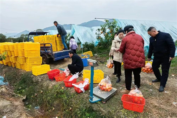 “沃柑园亩产超8千斤,近期,湘东区村播孵化基地安排了文敏等村书记帮我们直播带货,拓宽销路,现在每天能出货3万斤发往萍乡和周边地区,我们还培训了当地20位采果工人,有效带动周边群众的就业和增收。”沃柑果园负责人程元新介绍。