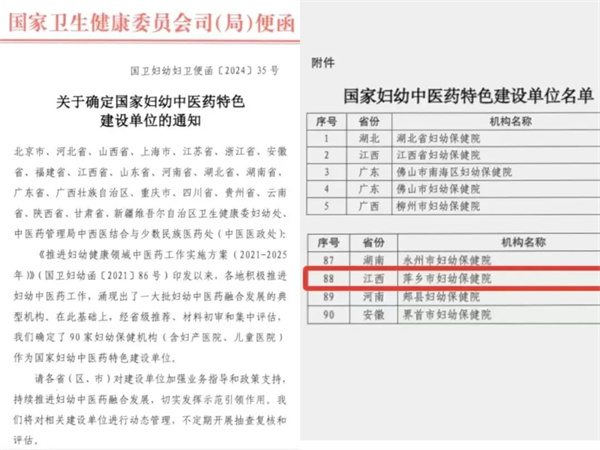 医院荣获“国家妇幼中医药特色建设单位”“第四批妇孺国医堂标准化建设项目”“样板妇孺国医堂单位”称号,中医药特色服务能力再上一个台阶。