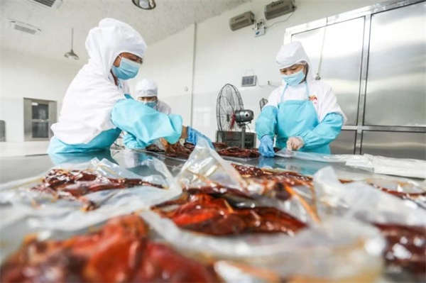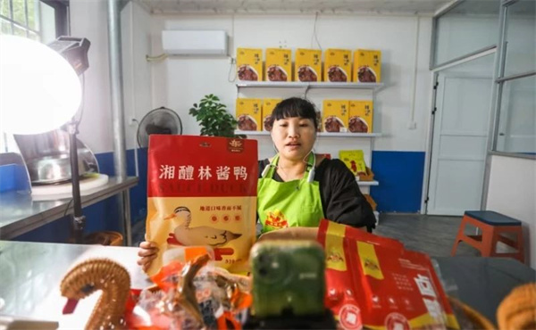 2012年,乘赣湘合作东风,湖南醴陵人林松来到荷尧办厂,开发生产出独具风味的香辣酱板鸭产品,因其齿颊留香、回味悠长的口感,很快在湘赣边热销,斩获众多“粉丝”。2021年,在发展壮大村级集体经济的浪潮中,善山村党总支多方筹集资金,以公司+销售+农户的形式入股湘醴林公司,助力湘醴林公司做大做强。目前,该公司可生产鸭、鸡、牛、鱼等品类的60多个产品,新增“碎碎鸭”、小包装鸭掌、鸭翅等多个新品,在萍乡、醴陵等地设有32个加盟专卖店。
