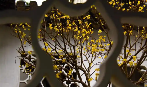 腊梅并非梅类,却有着与梅相似的傲霜凌雪之姿。不同于梅花的五瓣花瓣舒张,蜡梅的花朵小巧而含蓄,色泽金黄,犹如蜡质雕琢而成,在阳光的照耀下花瓣呈现半透明状,晶莹剔透,散发着淡雅而迷人的香气。这香气清幽绵长,在寒冷的空气中弥漫开来,让人闻之顿感心旷神怡,仿佛所有的烦恼都被这一缕清香驱散。