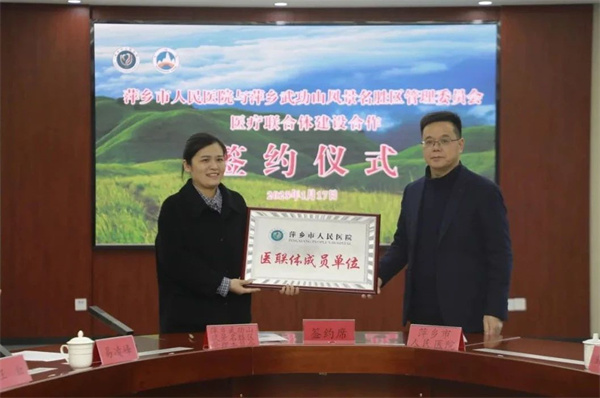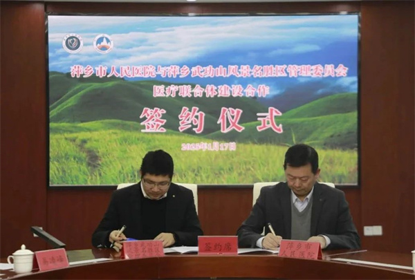 1月17日,萍乡市人民医院与武功山管委会医疗联合体建设合作签约仪式在武功山风景名胜区举行。