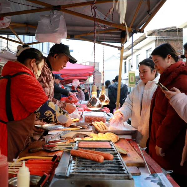 多彩诱人的零食干果,老少皆爱,小尝大买;新鲜实惠的水果蔬菜,来了哪能错过;特色小吃,喷喷扑鼻,等等又何妨……人们自在地穿梭各摊位,逛一逛,看一看,该出手时就出手。摊主们也都忙得不亦乐乎,脸上洋溢着喜悦的笑容,双手不停地称重、打包、制作美食。
