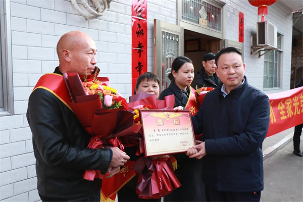 为弘扬拥军优属的优良传统,李洪还走访慰问了对越自卫还击战参战退役军人傅荣生和现役军官黄勤、陈柯的家属。在傅荣生家中,李洪详细询问他退役后的生活和工作情况,认真聆听他讲述当年的战斗经历,对他为国家和人民作出的贡献表示崇高敬意。随后,李洪带着喜报和“二等功臣之家”牌匾来到宣风镇茶垣村,为立二等功现役军人黄勤的家庭送去新春祝福,伴随着声声鞭炮声,黄勤父母身披绶带,脸上洋溢着自豪的笑容。李洪与黄勤的父母亲切握手,感谢他们为国家培养了优秀人才,鼓励他们继续支持孩子在部队建功立业。在现役军官陈柯家中,李洪与家属亲切交谈,详细了解他们的生活状况和实际困难,并对多次荣立二等功、三等功的现役军官陈柯表示崇高的敬意。他表示,一人当兵,全家光荣,芦溪县委、县政府将一如既往地关心军属生活,全力解决他们遇到的困难,让军人在部队安心服役。