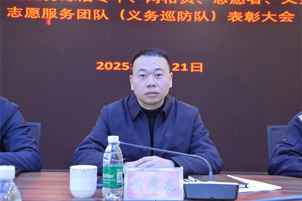 镇党委副书记黄厚龙对志愿者、义务巡防队、综治专干以及网格员一年来热心于上栗镇的禁毒、反电信诈骗教育宣传、森林防火、“禁三烧”、夜间连片巡逻、打击非法生产、平安护校、文明城市创建等工作表示感谢,对受表扬对象表示祝贺,并勉励大家要发挥典型作用,积极向优秀看齐,做好表率。