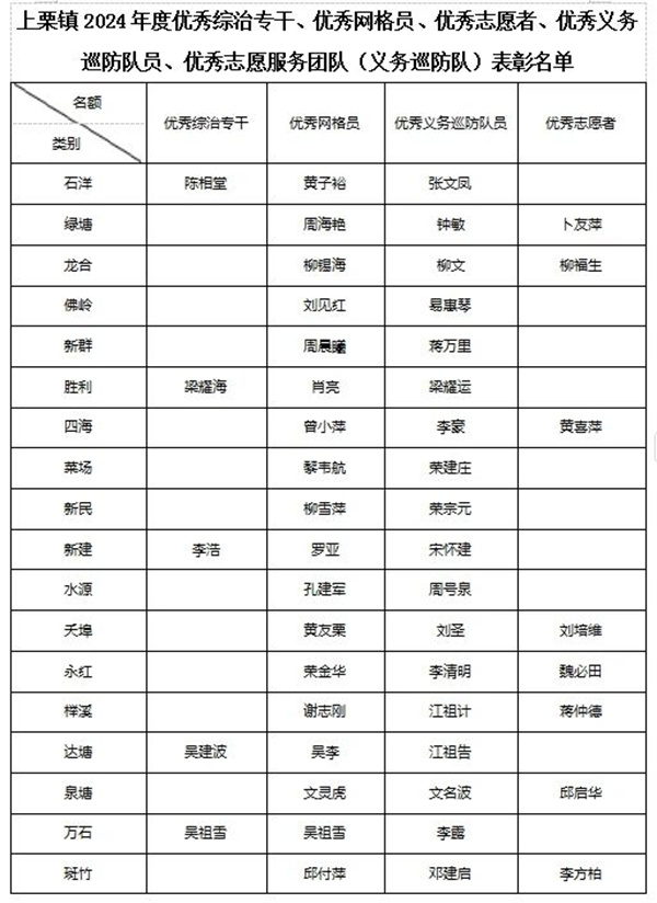 上栗镇公开表扬一批优秀专干网格员和志愿服务团队
