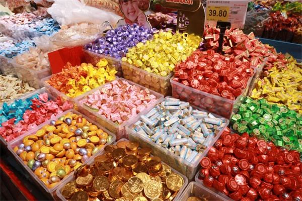 再看食品区,各类年货更是令人目不暇接。糖果专柜前,五彩斑斓的糖果散发着甜蜜的气息,徐福记、阿尔卑斯等知名品牌的糖果应有尽有,从经典的酥心糖到时尚的水果软糖,满足了不同年龄段消费者的口味需求。坚果区域同样人气爆棚,饱满的腰果、香脆的杏仁、颗粒大且饱满的核桃等,被精心包装成一袋袋,成为市民们选购的热门商品。一位正在挑选坚果的市民罗凤说:“今年过年,我准备买一些小朋友爱吃的糖果、辣条、坚果,家里少不了这些零食,亲戚朋友来了,大家可以围坐在一起边吃边聊天,可热闹啦”