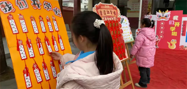 在上栗镇胜利小学,孩子们的目光被精心布置的校园环境所吸引。色彩鲜艳的气球拱门、充满童趣的主题展板,激发了孩子们对新学期的期待。“我刚踏进校门,看到了同学们在寒假制作绚丽多彩的特色作业和学校布置的蛇元素摆件,使我对新学期的学习非常向往。我希望自己在这学期有更大的进步,积极参与班级的活动当中,和同学分享学习的喜悦!”学生赖依依开心地说道。