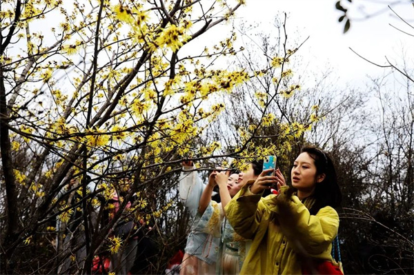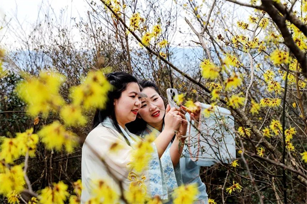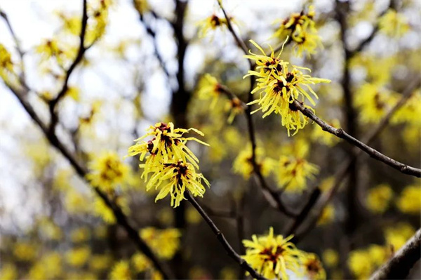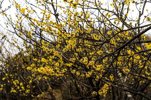 近日,在江西省萍乡市湘东区广寒寨乡,近千亩野生金缕梅迎风绽放。连绵山野间,金黄花簇如繁星缀满枝头,细长花瓣随风摇曳,为初春绘就一幅流动的生态画卷。