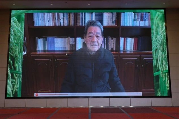 ▲中国工程院院士颜龙安通过视频方式发来贺电