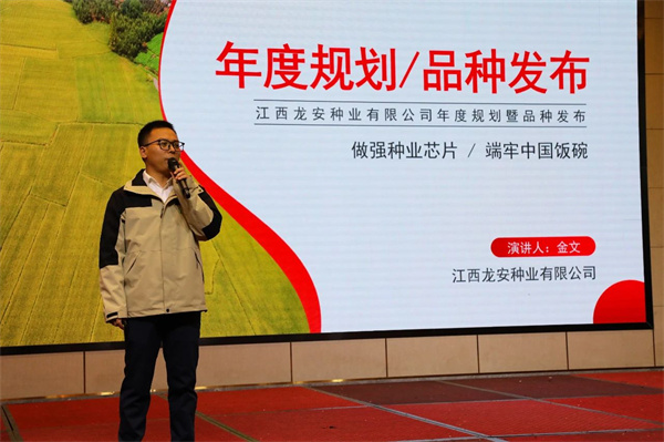 ▲江西龙安种业有限公司进行路演,讲解公司年度规划暨新品发布
