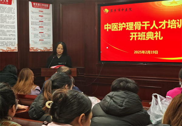 为提升萍乡市中医院中医护理骨干人才的专业素养、实践能力和中医护理思维能力,2月19日,由护理部精心筹备的中医护理骨干人才培训班第一期正式开班。此次开班典礼由护理部主任阳国华主持,现场气氛庄重而热烈,拉开了中医护理人才培养新征程的序幕。