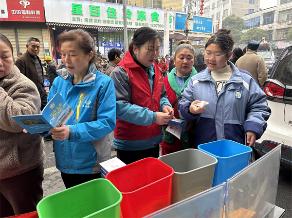 活动现场,垃圾分类志愿者向群众详细介绍垃圾分类的意义、分类标准和投放要求。同时,还向群众发放了垃圾分类宣传手册,鼓励他们在日常生活中积极践行垃圾分类理念,以生动的讲解和现场演示,引导群众正确分类垃圾,共同维护集市环境整洁。