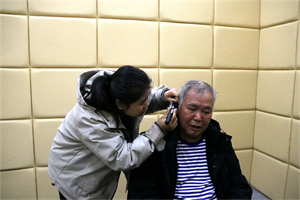 在活动的最后阶段,工作人员为参加活动的村民试戴助听器,并为符合要求的听障人士送上助听器。