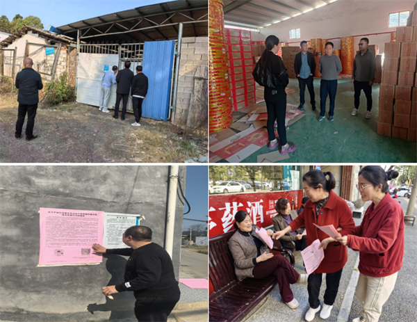 镇班子成员带领驻村工作组、村支两委干部深入辖区民房、闲置厂房、退出企业、养殖场等场所进行“地毯式”排查,对前科人员及涉药工序人员进行“敲门行动”,做到不留死角、不留盲区,全面消除安全隐患。在排查的过程中,镇村干部张贴打击非法生产通告,与村民面对面讲解烟花爆竹非法生产的严重危害,鼓励大家参与烟花爆竹非法生产监督举报,进一步提升村民安全防范意识。