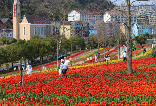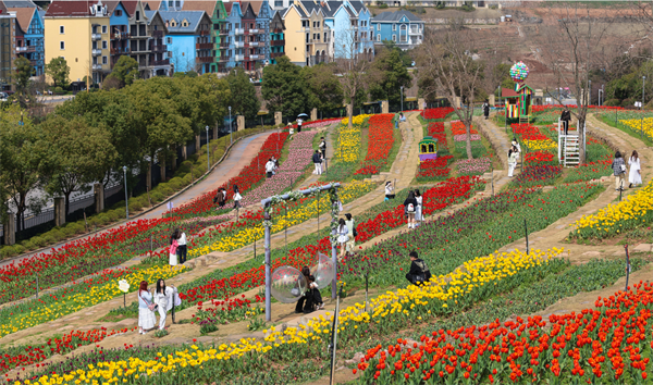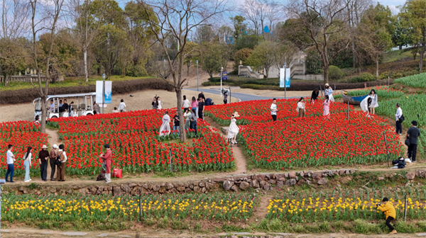 “这里的郁金香真是太美了,每一朵都像是精心雕琢的艺术品,色彩鲜艳,形态各异,我和朋友都非常喜欢,而且这里不仅有花海,还有游乐设施,我玩得很开心。”游客欧阳海艳说道。