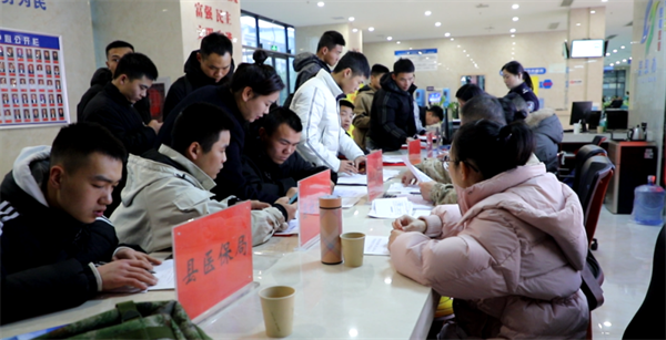 3月4日上午,记者在县市民中心看到,在退役军人返乡服务台,工作人员正在引导退役军人办理报到登记、预备役登记、组织关系转接、落户手续以及养老保险接续等手续。