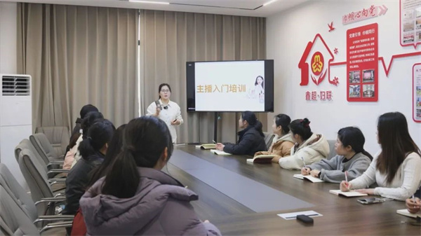 在某直播公司的培训现场,培训老师正为20名来自各乡镇的“宝妈”讲解直播技巧。从场景搭建到脚本设计,从平台规则到行业趋势,宝妈们全神贯注学习,为即将开始的直播带货做准备。