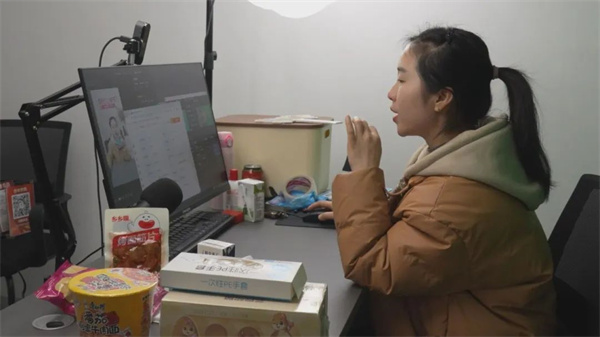 刚开始面对镜头的时候我也很害怕,因为要面对那么多的网友,后面通过直播不断地实操练习,我发现自己也可以做得不错。现在通过直播带货,我也可以增加一份收入,补贴家用。我现在在这里直播,一个月可以达到150个小时,工资有4000元。