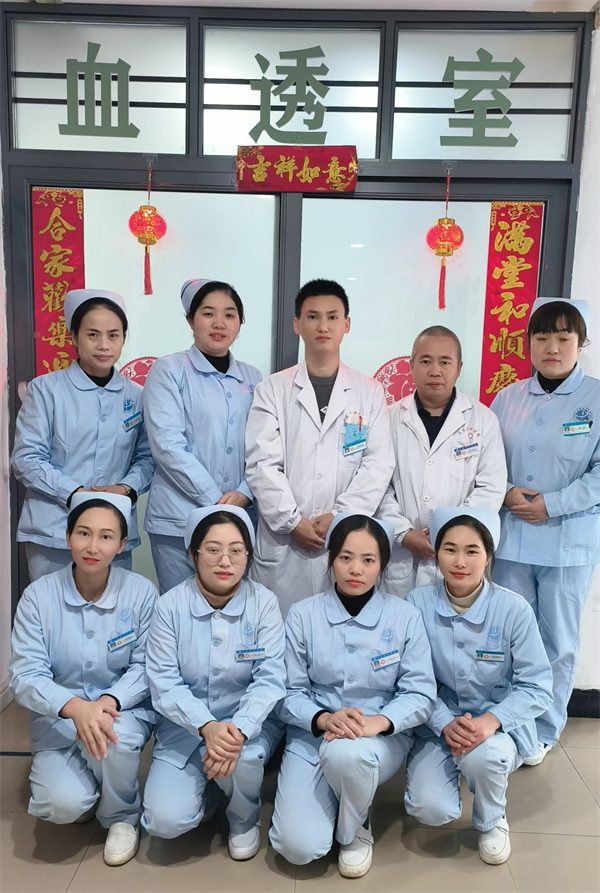 血透室拥有一支高素质、专业化的医护团队。现有专业技术人员11人,其中,副主任医师3人、硕士研究生1人;护理人员7人,其中副主任护师1人,主管护师5人。全部到省、市级医院进修学习,并与萍乡市人民医院、萍矿湘雅医院及湖南省直中医院紧密合作,他们团结协作,以患者为中心,用专业的技术和温暖的关怀,守护着每一位患者的健康。