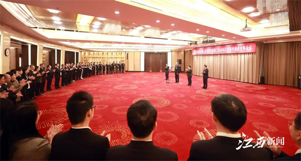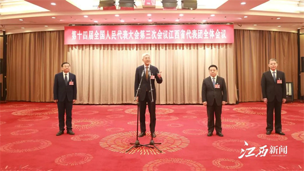 尹弘、叶建春与工作人员一一握手,感谢大家付出的辛勤努力。尹弘说,人民代表大会制度是坚持党的领导、人民当家作主、依法治国有机统一的根本政治制度安排。每年召开全国人民代表大会,是践行全过程人民民主的具体体现。十四届全国人大三次会议即将胜利闭幕,会议期间,江西代表团各位代表认真履职尽责,严谨细致审议大会各项报告,提出许多高质量议案建议,顺利完成大会各项任务,这与代表团全体工作人员的共同努力和保障服务密不可分。大家始终以饱满的政治热情和认真负责的工作态度,恪尽职守、紧密配合,严格遵守会风会纪,加强各环节沟通协调,扎实做好会务组织、新闻报道、材料简报、后勤服务、安全保障、卫生保健等各项工作,充分展现了江西代表团优良的工作作风、严格的质量标准。