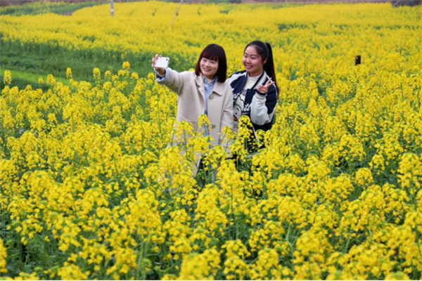 在青山镇温盘村,百亩油菜花田宛如金色的海洋,与远处的青山、村落交相辉映,构成了一幅绝美的田园画卷。近年来,青山镇以花为媒,大力发展乡村旅游,将油菜花种植与观光旅游相结合,吸引了大量游客前来打卡。游客们漫步花海,欣赏美景,体验乡村生活的宁静与美好。