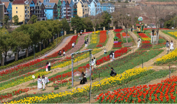 “今年的品种更多样了,每一种都美得让人移不开眼,拍照根本停不下来!”游客王可兴奋地说。走进白源街凯光新天地生态旅游区,百万株郁金香竞相绽放,将景区装点成如梦如幻的花之王国。为方便游客拍照打卡,景区设置了花间小径、风车背景、花海秋千等多种打卡点,还推出了“花仙子”巡游、旗袍秀等特色活动,进一步提升了游客的体验感。
