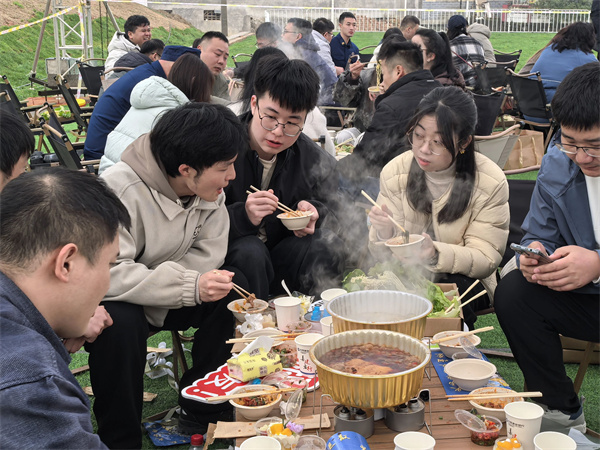 游戏过后,在热腾腾的烟火气中,火锅的香味开始蔓延,大家围坐在一起,边品尝香辣美味的火锅,边分享生活中的点点滴滴,欢声笑语让这一刻的烟火气息更为温暖浪漫。在这样的“热辣”氛围中,有人举杯欢庆今天的相遇,有人拿起手机“面对面”建群,有人相约来日再会……新的友谊生根发芽,原本陌生的心渐渐产生了联系,一段奇妙的缘分从这里开启。