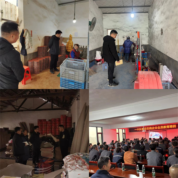 行动中,花炮安监执法人员前置风险防控,夯实安全根基。针对“三超一改”企业展开细致严查,不放过任何一处安全隐患点,确保企业生产合规有序。着重要求企业规范建立烟花爆竹流向登记表等,从源头上把控产品流向;查看危险性工库房的标识牌与警示标志设置情况,确保标识清晰,位置醒目。同时,组织辖区企业特种作业人员分类别、分工种开展安全教育培训,通过反复观看操作视频查找作业问题,对前期检查发现的问题进行反馈并提出具体的整改要求,要求全镇花炮企业法定负责人、安全厂长以及涉药工艺员工参与重新培训,考核不通过者坚决禁止上岗,推动企业将三级安全教育培训制度切实落到实处。